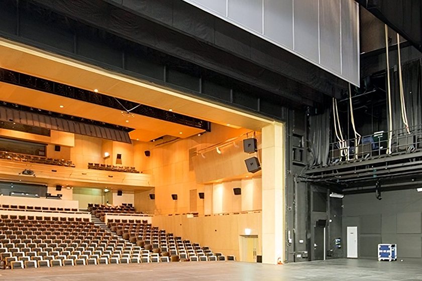 극장1: (상부) Curtain Batten [5], Movable Light Bridge [14] / (하부) Stage Lift [34], Orchestra Lift [2], 수납식객석 [1120석] 극장2: (상부) Safety Curtain [1], House Curtain [1], Set Batten [51], Draw Curtain [4] Roll Placard [2], 음향반사판 [1] / (하부) Orchestra Lift [1],Trap Door [12,000W x 6,000D], Trap Lift [2] 제어시스템 : 무대전용 PLC 제어시스템 |