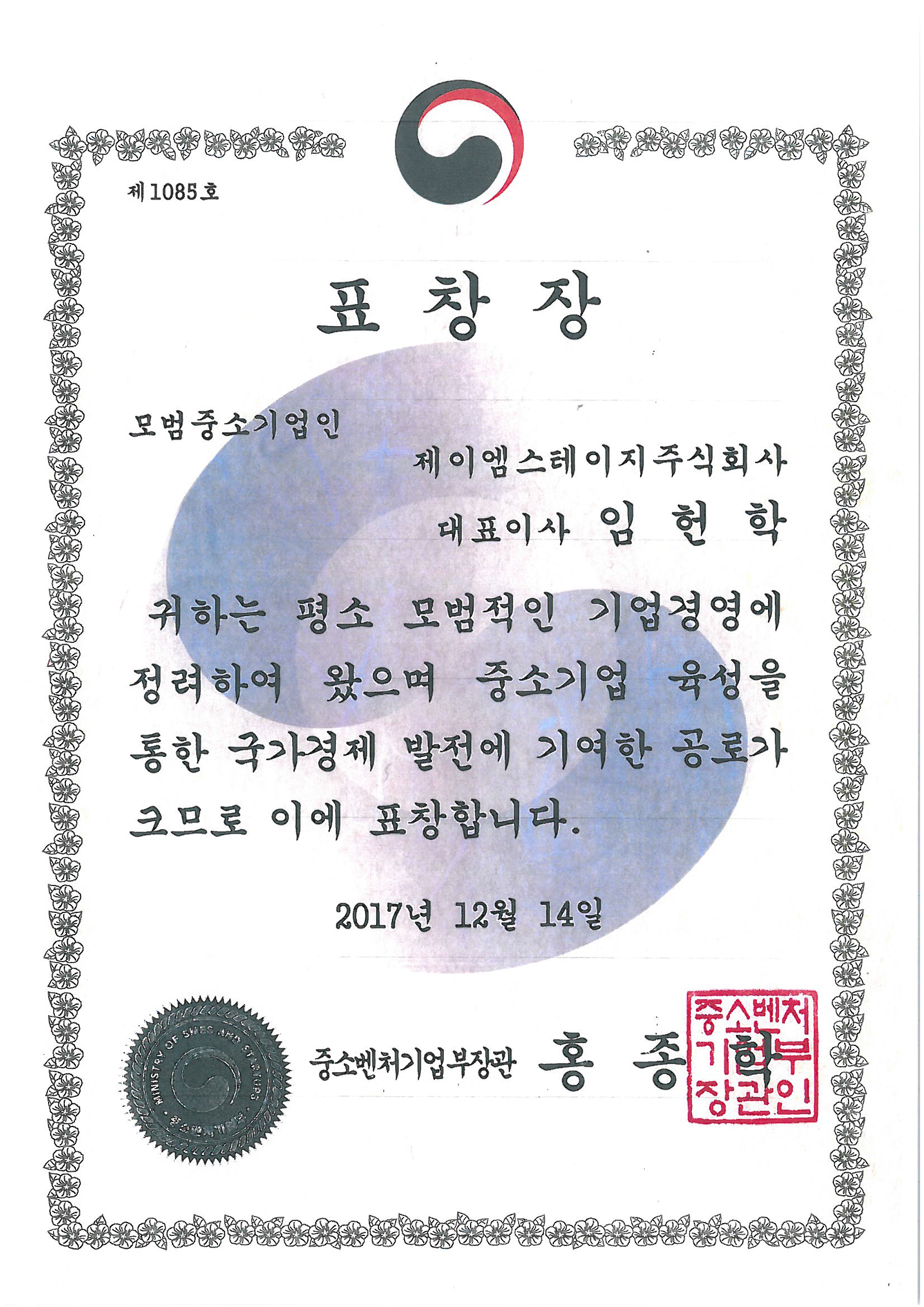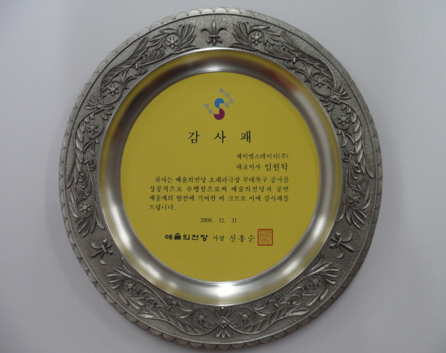 한국산업기술시험원으로 부터 무대기기 제어 소프트웨어에 대해 품질 인증 최고 등급인 1등급을 획득하여 검증된 고성능의 정밀제어 제어시스템을 제공하고 있습니다.