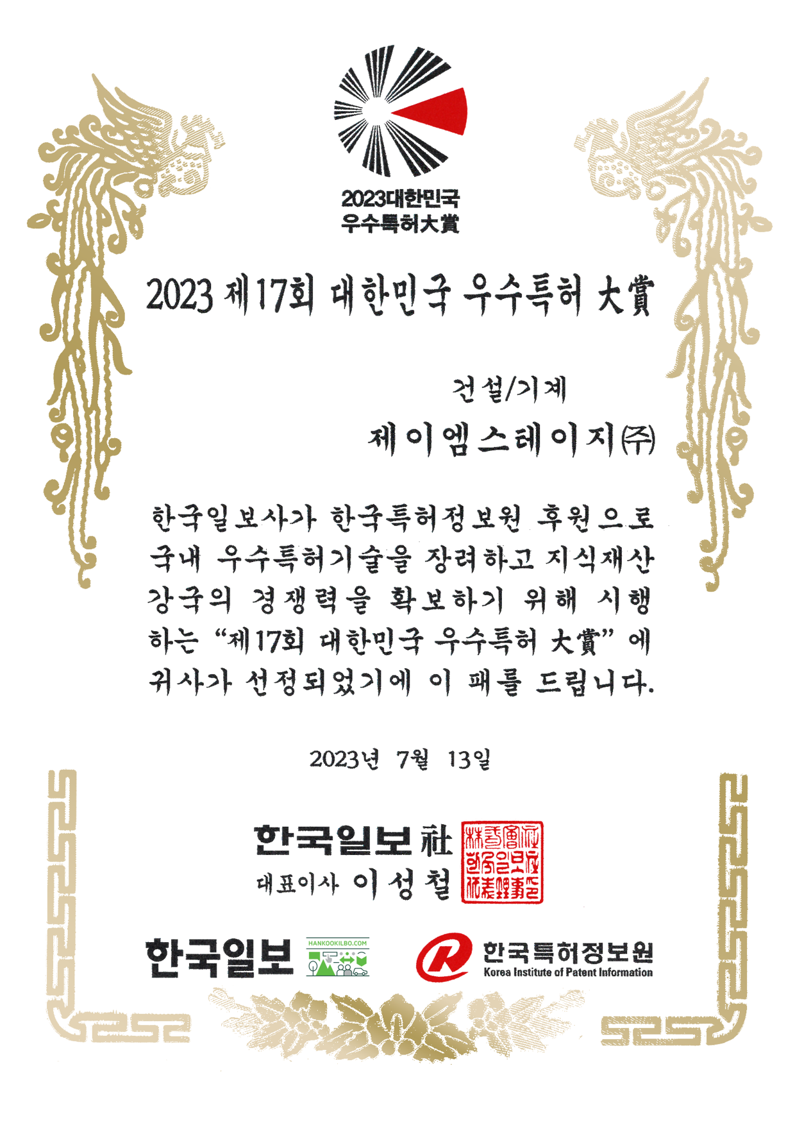 한국발명진흥회로 부터 우수발명품으로 인정 받아 공공기관에 우선 구매 추천 제품으로 인증받았습니다.
